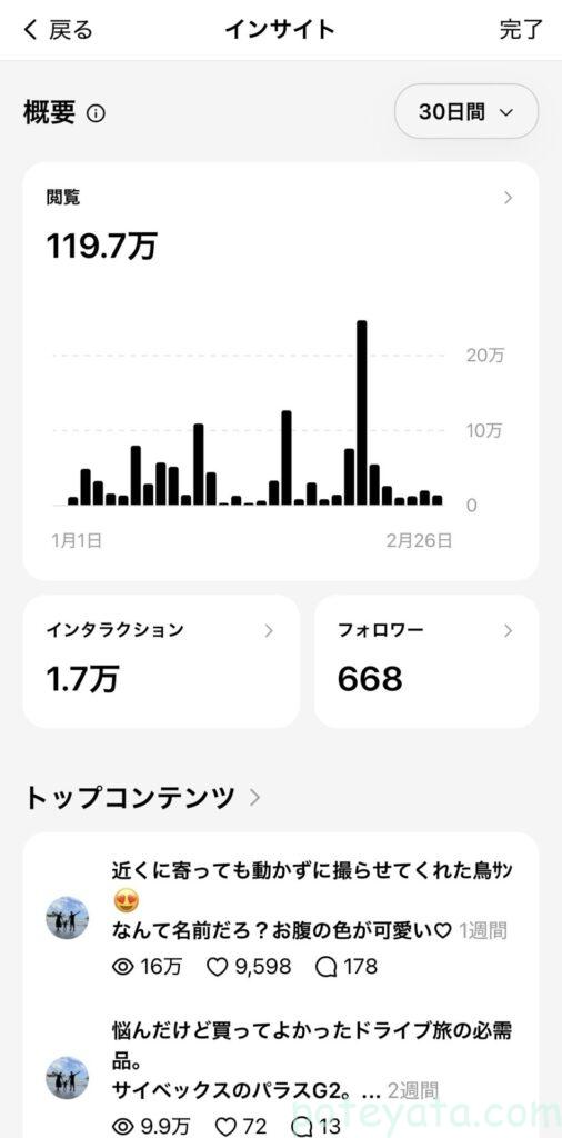 1月下旬~2月下旬までの30日間、スレッズを毎日投稿してみた結果は、以下です。